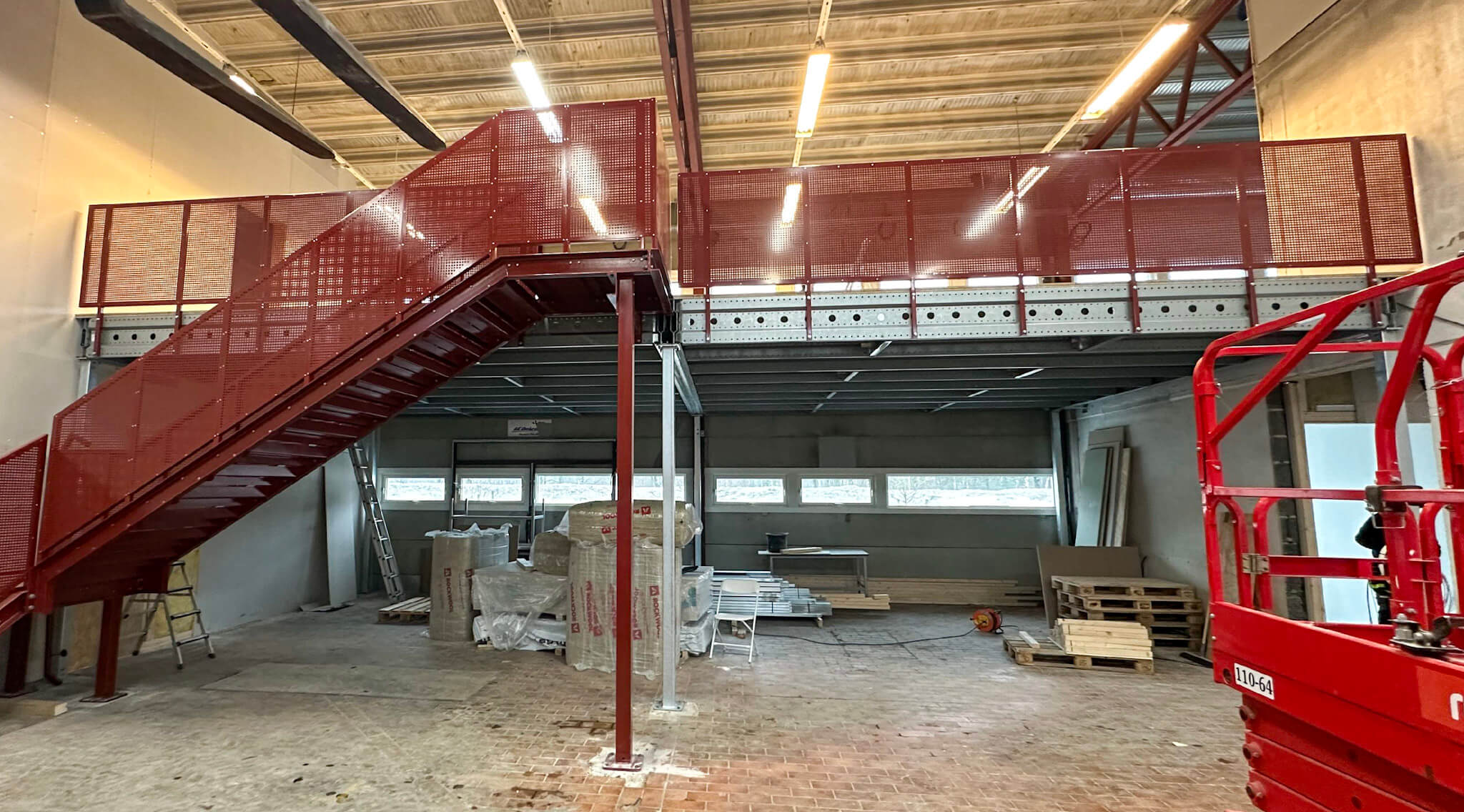 Vi prosjekterer, produserer og monterer mesaniner og andre stålkonstruksjoner over hele landet – helt etter dine behov.