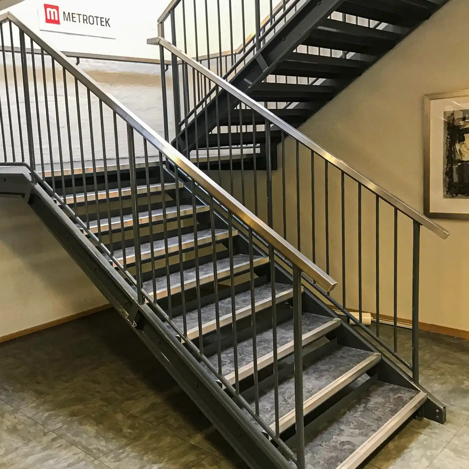Hvilke materialer som benyttes – hvilken profil og dimensjoner på metallet – blir beregnet ut i fra trappens bruksområde. Hvor mye den skal tåle, bygningens øvrige egenskaper, etc. Vi hjelper deg å finne ut hva som trengs, for en trapp du kan ha nytte av i mange år fremover.